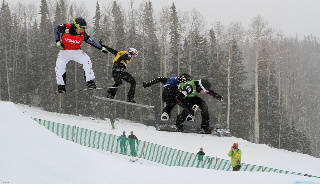 Marín, al centre, de blau, als quarts de final a Telluride. (Foto: Oliver Kraus/FIS)