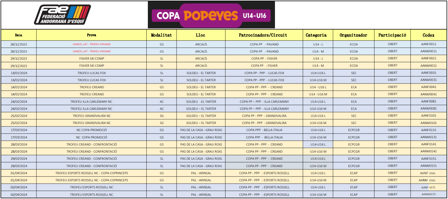 Torna la competició a Andorra. Aquest cap de setmana, doble cita amb la Copa Popeyes U14-U16 a Soldeu-El Tarter amb dos eslàloms i dos gegants.