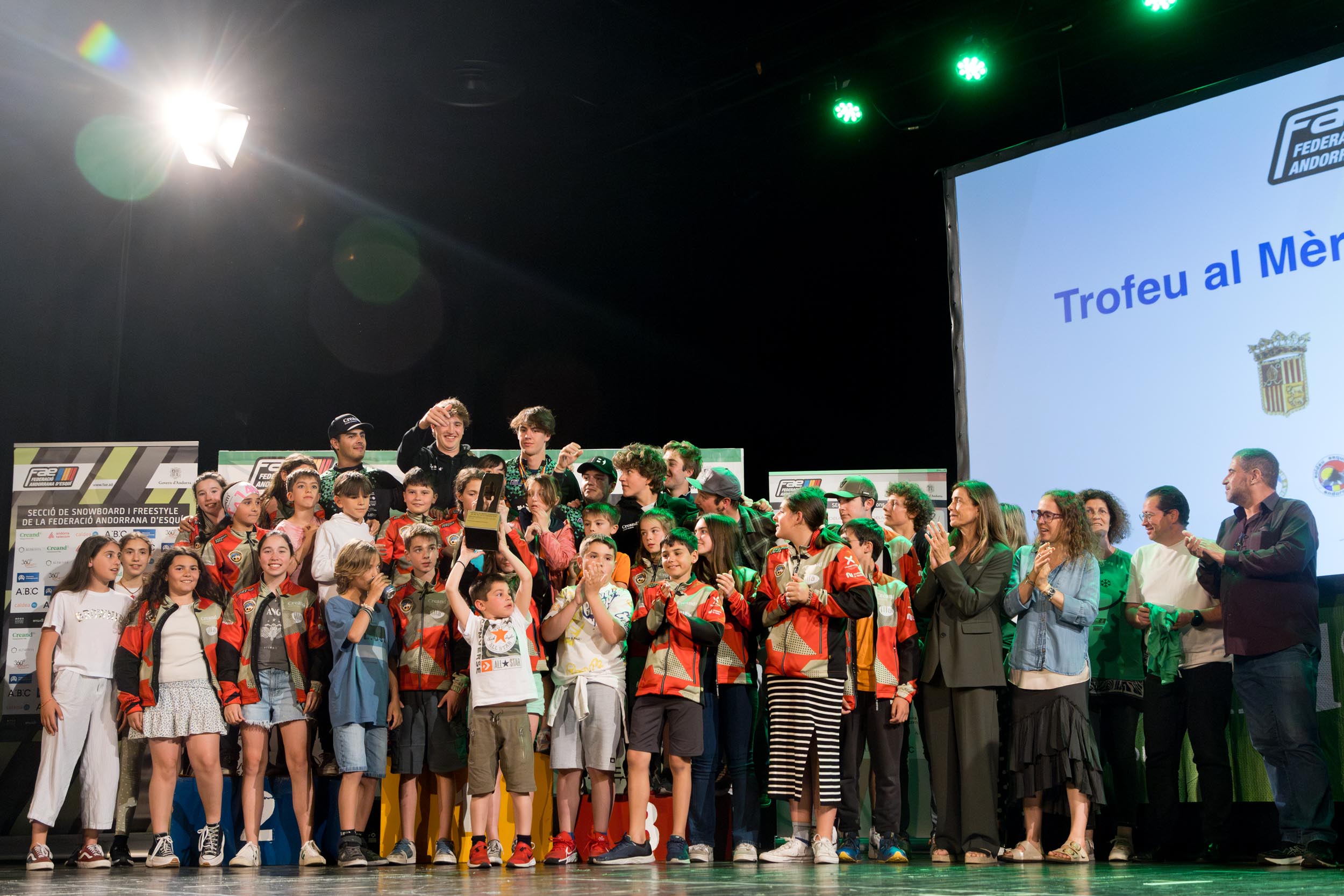 El Prat del Roure d’Escaldes-Engordany va acollir dimarts a la tarda la gala de lliurament dels premis de la temporada en totes les disciplines, curses i competicions. L’acte va tenir lloc envoltat d’un gran ambient amb tota la família de l’esquí andorrà present, representants de clubs, institucions del país, col·laboradors de la FAE i públic en general que també s’ha volgut afegir a la jornada, que incloïa al seu final la retransmissió en directe des d’Islàndia de la designació de la seu dels Campionats del Món pel 2029. El trofeu al Mèrit Esportiu ha estat aquest any per l’Esquí Club Andorra.